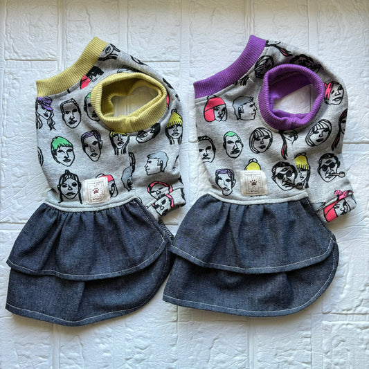 フェイスフリルスカート パープル イエローライム チェリーピンク 顔柄 デニムスカート w18
