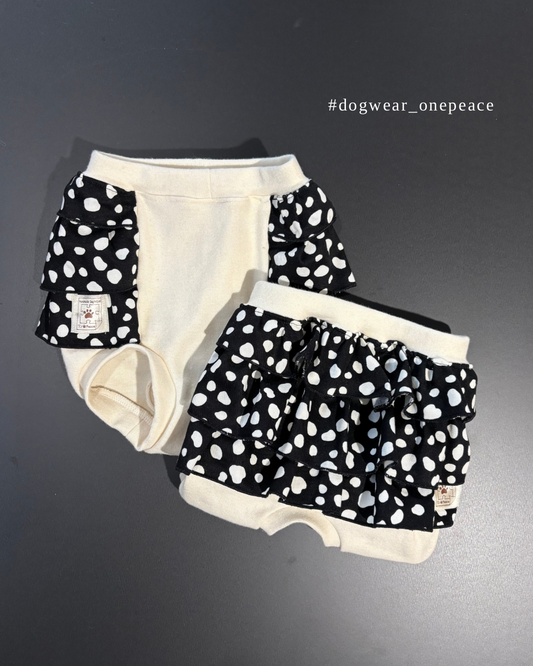 ダルメシアンフリルスカート ダルメシアンシャツタンクトップ ダルメシアン柄 ブラック ボアグレー w22